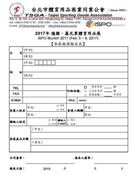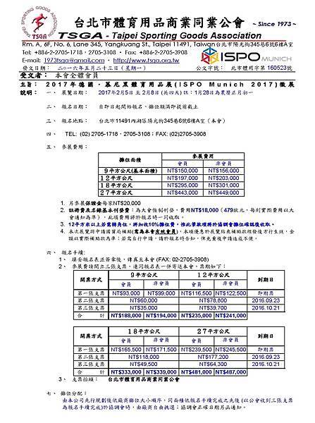 <p style="text-align: center;"><span style="color:#FF0000"><span style="font-size:28px"><span style="font-family:標楷體">一年一度的體育用品展</span></span></span></p> <p style="text-align: center;"><span style="color:#FF0000"><span style="font-size:28px"><span style="font-family:arial,helvetica,sans-serif">ISPO MUNICH 2017 </span></span></span><img alt="" height="40" src="https://pic.pimg.tw/tectpe/1466670308-790623116.png" title="" width="201"><span style="color:#FF0000"><span style="font-size:28px"><span style="font-family:標楷體"> </span></span></span></p> <p style="text-align: center;"><span style="color:#FF0000"><span style="font-size:28px"><span style="font-family:標楷體">將在</span><span style="font-family:arial,helvetica,sans-serif">2017</span><span style="font-family:標楷體">年</span><span style="font-family:arial,helvetica,sans-serif">2</span><span style="font-family:標楷體">月</span><span style="font-family:arial,helvetica,sans-serif">58</span><span style="font-family:標楷體">日德國慕尼黑隆重開幕</span></span></span></p> <p style="text-align: center;"><span style="color:#FF0000"><span style="font-size:28px"><span style="font-family:標楷體">我們的徵展也於</span><span style="font-family:arial,helvetica,sans-serif">5</span><span style="font-family:標楷體">月</span><span style="font-family:arial,helvetica,sans-serif">23</span><span style="font-family:標楷體">日火熱開始</span></span></span></p> <p style="text-align: center;"><span style="color:#FF0000"><span style="font-size:28px"><span style="font-family:標楷體">敬請欲參展的廠商盡快把握機會報名</span></span></span></p> <p style="text-align:center"><img alt="" height="600" src="https://pic.pimg.tw/tectpe/1466669726-2371672400_n.jpg?v=1466669727" title="" width="446"></p> <p style="text-align:center"><img alt="" height="600" src="https://pic.pimg.tw/tectpe/1466669736-1448889595_n.jpg" title="" width="446"></p> <p style="text-align:center"><img alt="" height="600" src="https://pic.pimg.tw/tectpe/1466669746-2600242245_n.jpg" title="" width="446"></p>
