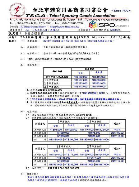 <p style="text-align: center;"><span style="color:#0000FF"><span style="font-size:22px"><span style="font-family:標楷體">年度最大最有知名度的體育用品展</span></span></span></p> <p style="text-align: center;"><span style="color:#0000FF"><span style="font-size:22px"><span style="font-family:arial,helvetica,sans-serif">ISPO MUNICH<span style="font-family:標楷體"> </span>2018 </span><span style="font-family:標楷體">開始徵展</span></span></span></p> <p style="text-align: center;"><span style="color:#0000FF"><span style="font-size:22px"><span style="font-family:標楷體">本次展覽將在</span><span style="font-family:arial,helvetica,sans-serif">2018</span><span style="font-family:標楷體">年</span><span style="font-family:arial,helvetica,sans-serif">1/28 1/31</span><span style="font-family:標楷體">於德國 慕尼黑盛大舉行</span></span></span></p> <p style="text-align: center;"><span style="color:#0000FF"><span style="font-size:22px"><span style="font-family:標楷體">欲參加體育用品界的年度盛事,想拓展事業版圖</span></span></span></p> <p style="text-align: center;"><span style="color:#0000FF"><span style="font-size:22px"><span style="font-family:標楷體">趕快跟我們聯絡</span></span></span></p> <p style="text-align: center;"><img alt="" height="600" src="https://pic.pimg.tw/tectpe/1493977725-2367055643_n.jpg" title="" width="446"></p> <p style="text-align: center;"><img alt="" height="600" src="https://pic.pimg.tw/tectpe/1493977733-4054351650_n.jpg" title="" width="446"></p>
